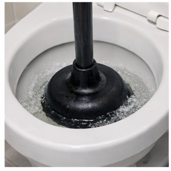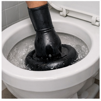 - 변기 배수구에 밀착시킨 뒤 위아래로 눌렀다 빼기를 반복합니다.