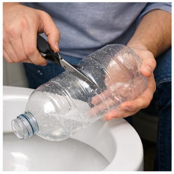 - 변기 물 수위가 높다면 먼저 일부를 퍼냅니다.
