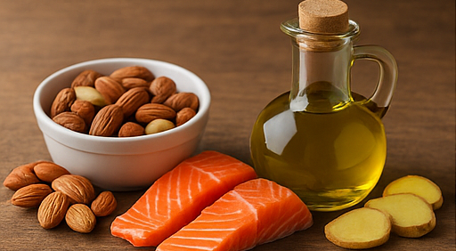이건 연어, 고등어, 호두, 아몬드, 들기름, 올리브유 등에 들어 있는데요, 지방간 개선에 꽤 도움이 된답니다. 튀김 말고 구이, 볶음도 되도록이면 올리브유들기름을 쓰면 간이 훨씬 편안해져요.