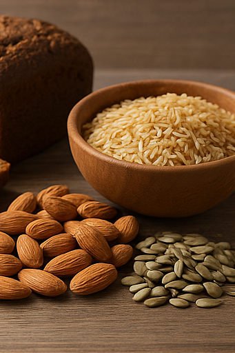 - 통곡물 제품(통밀빵, 현미 등)