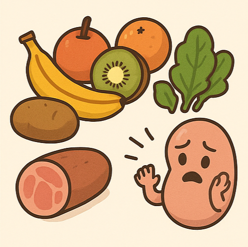 칼륨은 몸에 꼭 필요한 영양소지만, 신장이 나빠지면 칼륨을 잘 배출하지 못해요. 그러면 혈액 속에 칼륨이 쌓이게 되고, 심하면 심장까지 위험해질 수 있어요.