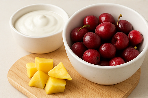 체리를 씨를 빼고 살짝 얼려두세요. 시원하게 얼린 체리를 무가당 요구르트 위에 올려 먹으면 건강한 디저트가 돼요.