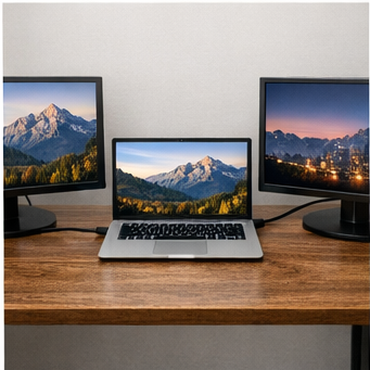 노트북 듀얼모니터 연결방법 중 가장 많이 쓰이는 방식은 HDMI 연결입니다. HDMI 케이블을 노트북과 모니터에 연결하면 대부분 자동으로 인식됩니다. USB-C 방식은 케이블 하나로 영상과 전원을 동시에 처리할 수 있어 깔끔한 환경 구성이 가능합니다.