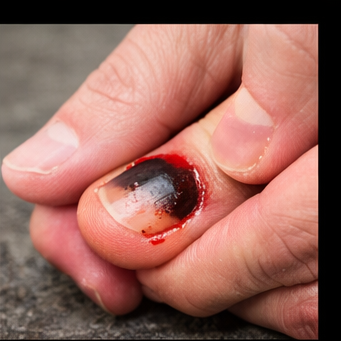 발톱이 검게 변하는 이유 중 가장 흔한 사례는 외상성 혈종입니다. 무거운 물건에 발을 부딪히거나, 등산·마라톤처럼 발가락에 지속적인 압력이 가해질 경우 발톱 아래 출혈이 발생합니다. 이때 발톱 밑에 피가 고이면서 검은색 또는 자주색으로 보이게 됩니다.
