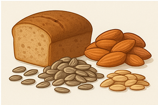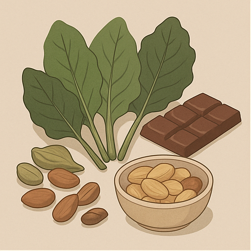 - 마그네슘 친화 음식 (통곡물, 씨앗류, 일부 견과류)