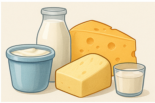 - 칼슘이 풍부한 식품 (요거트, 우유, 치즈, 강화 두유 등)