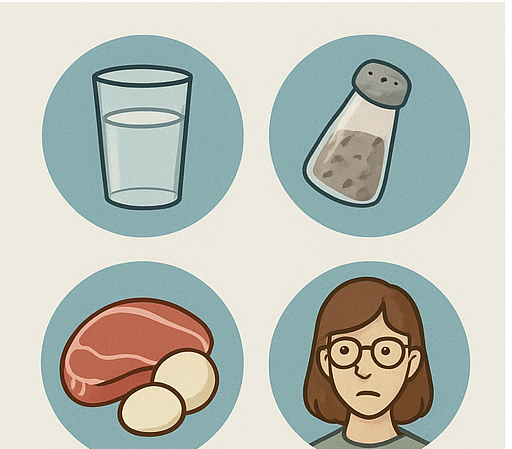 특히 가공육은 첨가물도 많고 염분도 높아서 더 문제예요. 예를 들어 소시지, 햄, 베이컨 같은 거요. 맛있죠. 아주 맛있어요. 하지만… 신장 입장에서는 그다지 반기지 않는 친구들이에요.