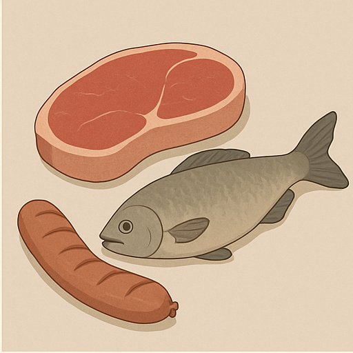 - 동물성 단백질(육류, 가공육, 생선)