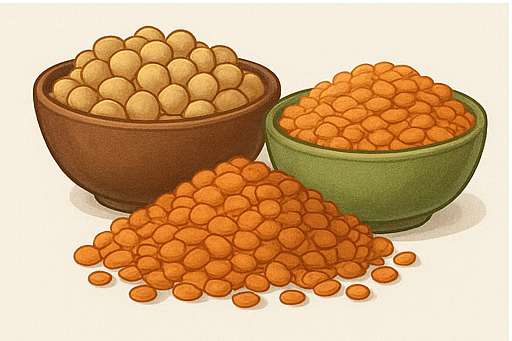 - 식물성 단백질 및 섬유질 공급원 (병아리콩, 렌틸콩 등)