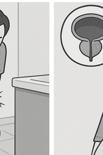 나이가 들면서 전립선이 점점 커지는 경우가 많아요. 이게 요도를 눌러 소변 보기가 어려워지고, 잔뇨감이나 배뇨 시 불편함이 생기죠. 마치 수도꼭지를 살짝만 틀어 물이 졸졸 나오는 느낌이에요. 통증은 덜하지만 계속 답답해요. - 방광·신장 결석