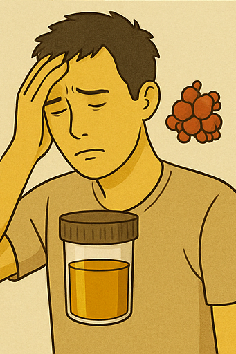 거기에 ‘유로빌린(urobilin)’이라는 녀석도 한몫해요. 이름도 비슷하죠? 얘도 역시 빌리루빈에서 파생된 물질인데, 소변을 좀 더 짙고 선명한 노란색으로 만드는 데 관여해요. 그러니까 둘이 팀을 짜서 "오늘은 살짝 레몬색!" 하고 색을 정하는 느낌이에요.