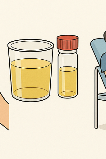 소변을 검사해서 세균 감염이나 혈뇨, 단백뇨 같은 이상이 있는지 확인해요.