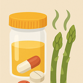 - 아스파라거스: 아스파구산 → 황 화합물 → 소변 냄새 → 빠르게 사라짐 (유전적 차이 있음)