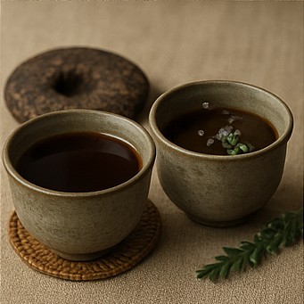 반면에 숙차는 "기다릴 시간이 어딨어!"라는 급한 사람들을 위한 차예요. 생차처럼 오래 기다리지 않고, 인위적으로 발효를 빨리 진행해서 만든 거죠. 그 과정에서 흙내음이 강하게 나고, 색도 훨씬 진해져요. 맛은 마시자마자 구수~하고 부드러워서, 보이차 입문자들한테는 숙차가 더 편할 수도 있어요.