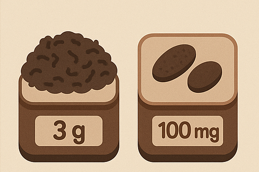 일반 보이차를 차로 우려내면, 컵 한 잔(약 200ml)에 갈산이 10~20mg 정도 들어 있다고 해요. 반면, 보이차 추출물 제품에는 이보다 훨씬 더 농축된 형태로 들어 있어서, 캡슐 하나에 50~100mg 이상 들어 있는 경우도 있어요.