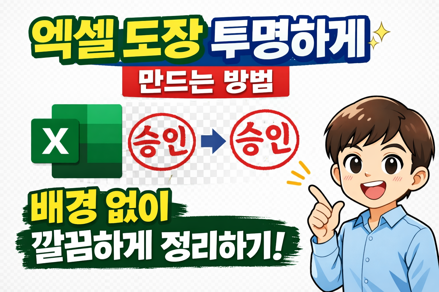 엑셀 문서에서 도장 배경을 깔끔하게 제거하는 방법 엑셀에 도장 이미지를 삽입했을 때 흰 배경이 함께 표시되어 문서가 지저분해 보이는 경우가 많습니다.특히 계약서나 견적서처럼 공식 문서에서는 작은 이미지 처리 하나로도 전체 인상이 달라질 수 있습니다.이런 문제는 대부분 도장 이미지가 배경이 포함된 JPG 형식이거나,엑셀에서 별도의 설정 없이 그대로 삽입했을 때 발생합니다.다행히 별도 프로그램 없이도 기본 기능만 활용해 충분히 해결할 수 있습니다.엑셀 기본 기능으로 도장 배경 제거하기가장 간편한 방법은 엑셀에 내장된 배경 제거 기능을 활용하는 것입니다.배경이 단순한 이미지라면 이 방법만으로도 충분히 깔끔하게 처리할 수 있습니다. 작업 순서엑셀 상단 메뉴에서 삽입 → 그림을 선택해 도장 이미지를 추가합니다..