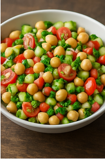 삶은 병아리콩을 토마토, 오이, 올리브, 양파 등과 섞고, 소금이랑 후추, 레몬즙, 올리브오일로 간만 해줘도 훌륭한 한 끼가 되거든요.