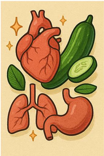 또 하나, 플라보노이드라는 항산화 성분도 들어 있는데요, 이건 혈관 벽을 튼튼하게 해주고 혈액의 흐름을 좋게 해줘요. 심장에 무리를 덜 주게 해주는 거죠. 복잡한 것 같아도, 결국 “오이 자주 먹으면 심장도 좋아진다!” 이렇게 생각하면 됩니다.