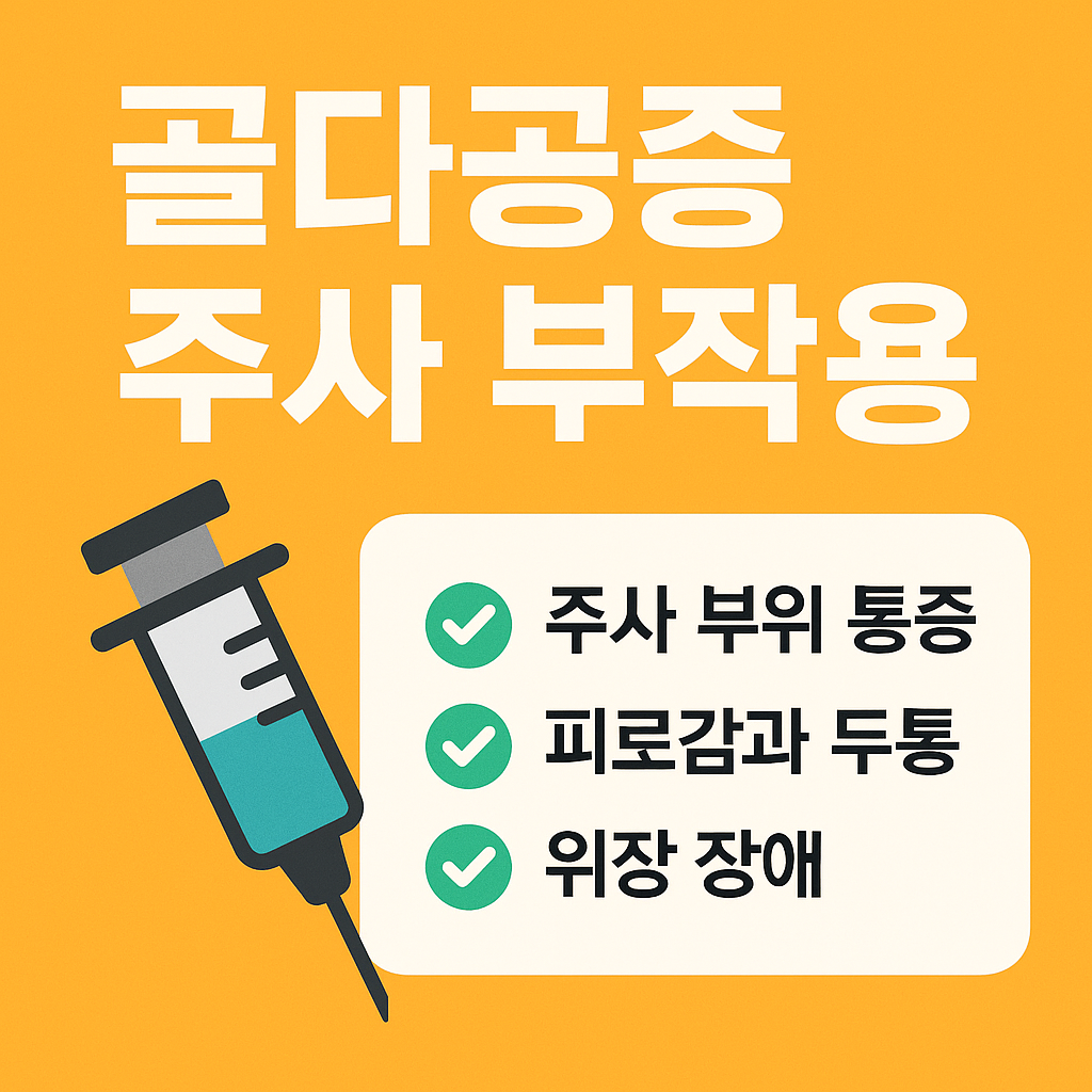 | 주의점 | 주사 후 감기 증상, 부작용 위험 | 중단 시 골 |