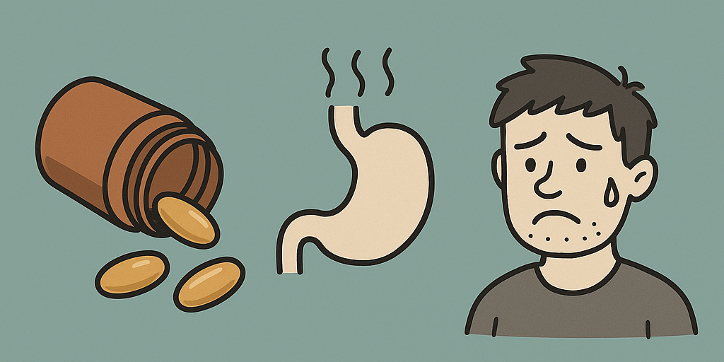 가장 흔한 부작용은 속이 더부룩하거나, 트림에서 비린내가 난다는 거예요. 입에서 생선구이 향이 솔솔 난다면… 뭔가 과한 거겠죠? 또 간혹 설사나 메스꺼움을 겪는 분들도 있다고 해요. 특히 공복에 고함량 보충제를 먹으면 위가 깜짝 놀랄 수 있어요. 그러니 식후 복용이 기본 중의 기본입니다.