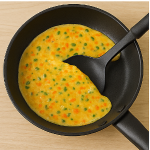 - 채소나 햄 등을 계란물에 미리 섞어 넣는 방법과, 치즈처럼 녹는 재료는 계란을 반쯤 익힌 뒤 그 위에 올리는 방식이 있어요. 치즈처럼 녹는 재료는 후자 방식이 더 풍미가 살아나요.