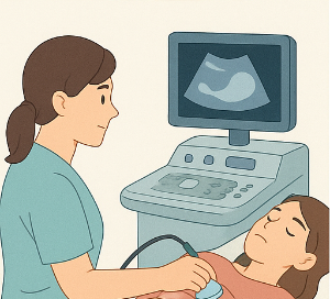 복부초음파는 우리 눈에 보이지 않는 높은 주파수의 소리(초음파)를 배 위에 대고 보내서, 몸속 장기와 혈관 구조를 실시간으로 영상으로 보는 검사입니다. 이 검사는 방사선을 사용하지 않고 통증이나 위험이 거의 없어, 안전하게 여러 번 반복할 수 있어요 .