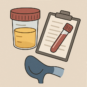 소변 검사는 소변에 염증이나 감염, 혈액의 흔적이 있는지 확인할 수 있는 가장 기본적인 검사예요. 특히 소변 내 백혈구, 니트라이트, 적혈구가 보이면 방광염이나 혈뇨 같은 문제가 있는지 확인할 수 있어요. 때로는 소변 배양검사를 통해 원인균을 정확히 찾아내고, 어떤 항생제를 써야 하는지도 파악한답니다. 이는 정확한 치료 계획에 꼭 필요해요.
