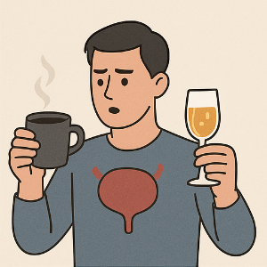 커피나 술 같은 음료에 든 카페인이나 알코올은 이뇨 작용을 강하게 일으켜서 방광을 자극하고 소변이 더 자주 마렵게 만들어요. 특히 더운 날 이런 음료를 많이 마시면 증상이 더 심해질 수 있어요.