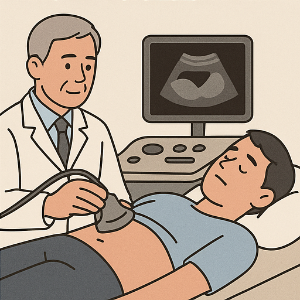초음파 검사는 통증 없이, 방광이나 신장 등의 구조적 이상을 확인할 수 있는 영상 검사예요. 방광의 두께, 잔뇨량, 돌, 종양, 혹은 방광 용량 이상 같은 걸 확인할 수 있어서 여러 가지 문제를 판단하는 데 도움이 돼요.