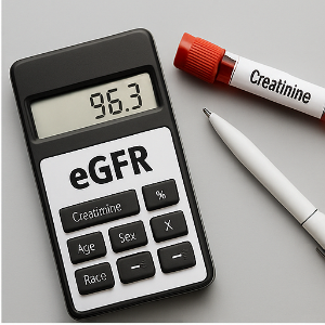 크레아티닌 농도만 알면 GFR을 바로 알 수 있는 건 아니고, eGFR (추정 사구체여과율)이라는 계산식을 사용해요. 혈액 크레아티닌 수치에다 나이, 성별, 체중, 인종 같은 정보가 추가로 들어가서 그 사람의 신장이 얼마나 잘 일하고 있는지를 계산해 주는 거예요.