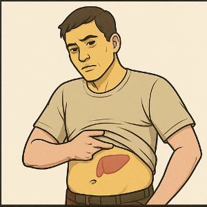 간에서 암이 자라면 체중 감소, 식욕 부진, 복부 부종(배가 불룩해짐), 그리고 오른쪽 배 통증이 나타날 수 있어요. 피부나 눈이 노래지는 황달도 함께 올 수 있어요. - 췌장암