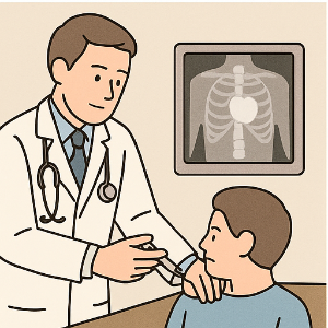 가슴 안에 있는 심장이나 폐, 갈비뼈 상태를 쉽게 찍어볼 수 있는 검사예요. 폐렴이나 흉막 이상 같은 문제를 살짝 엿보는데 유용하죠.