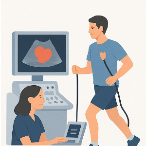 트레드밀을 걷거나 자전거 타며 운동하면서 심장 상태를 보는 검사예요. 평소엔 안 보이던 심장 이상이나 혈액순환 문제가 드러날 수 있어요.