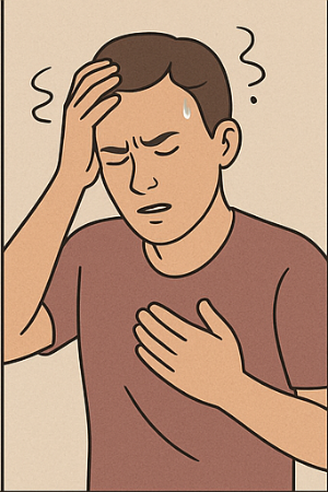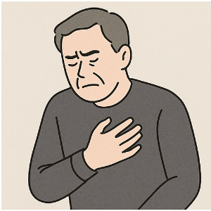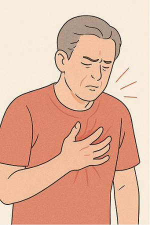 다음과 같은 증상이 함께 나타난다면 즉시 응급 진료를 받으세요:- 가슴 압박감/통증이 5분 이상 지속
