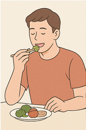 빨리 먹거나 스트레스로 인해 먹는 습관은 피하고, 식사할 때는 한입에 음미하면서 천천히 씹는 ‘마인드풀 이팅’이 소화도 도와주고 마음 안정에도 좋아요 .