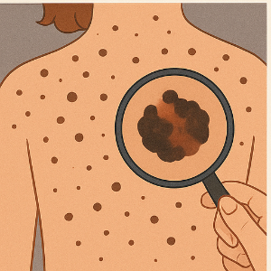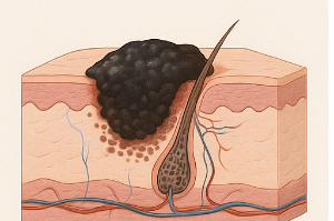 흑색종은 ‘피부암’의 한 형태예요. 전체 피부암 중에서 차지하는 비율은 낮지만, 가장 치명적이고 빠르게 퍼지는 특성을 가지고 있어요 . 특히, 비교적 드물지만 발생하면 다른 피부암보다 주변 조직이나 전신으로 전이될 가능성이 훨씬 크죠 .