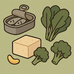 유제품이나 뼈 건강을 생각한 강화 식품에서 잘 얻을 수 있죠. 칼슘이 부족하면 새 뼈가 제대로 형성되지 않을 수 있어요.