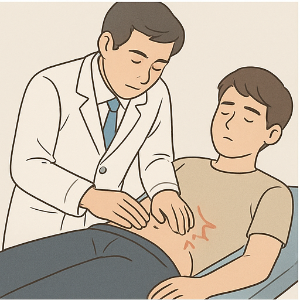 우선 병원에서는 의사 선생님이 몸 상태를 자세히 살피실 거예요. 이를 기본 진료와 신체검사라고 해요. 갈비뼈 아래가 아픈 부위를 눌러보면서 압통이 있는지, 혹은 피부 변화나 황달이 있는지 확인할 수 있어요. 또한 심전도 검사나 소변 검사도 필요할 수 있어요 .