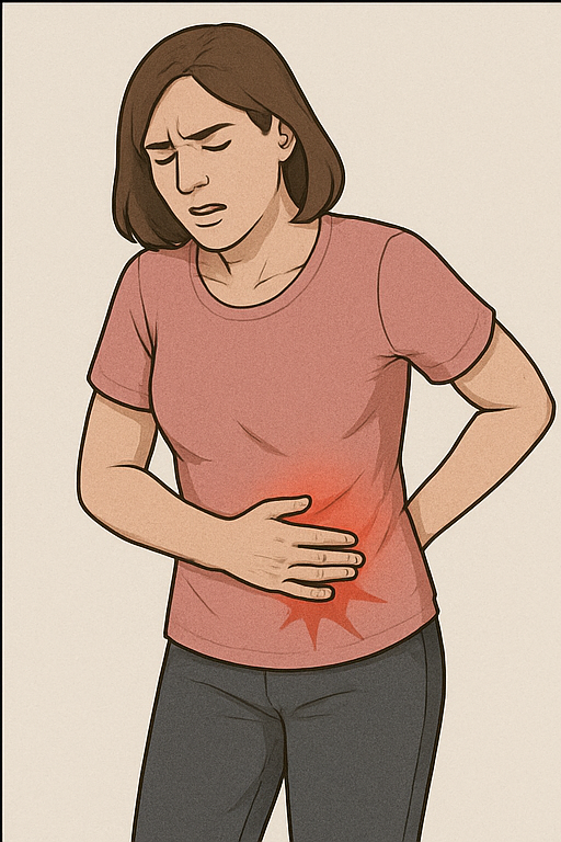 간은 오른쪽 갈비뼈 바로 아래에 있어요. 간이 부풀거나 염증이 생기면 묵직하거나 압박감 있는 통증으로 느껴질 수 있고, 피로, 메스꺼움 같은 증상이 함께 나타날 수도 있어요.