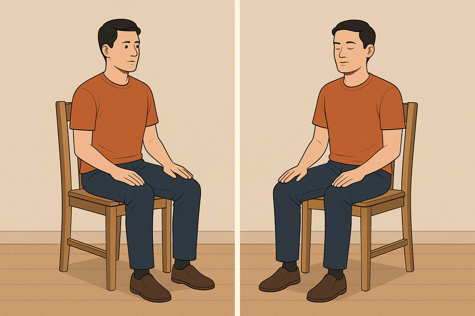 - 먼저 안정적인 의자를 골라 앉으세요. 가능한 등받이가 있고 바닥에 미끄러지지 않는 것이 좋아요.
