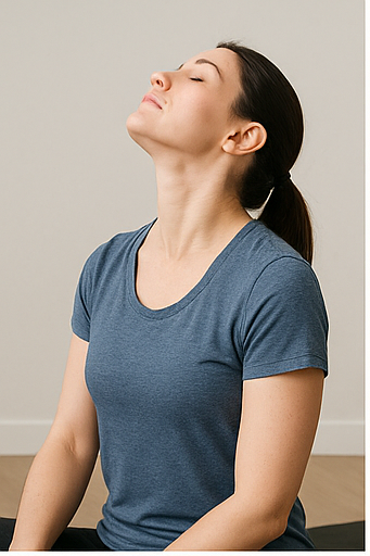 - 벽이나 손바닥을 이용해 머리를 앞·뒤·좌·우 방향으로 밀어주면서, 반대 힘으로 저항을 줍니다.