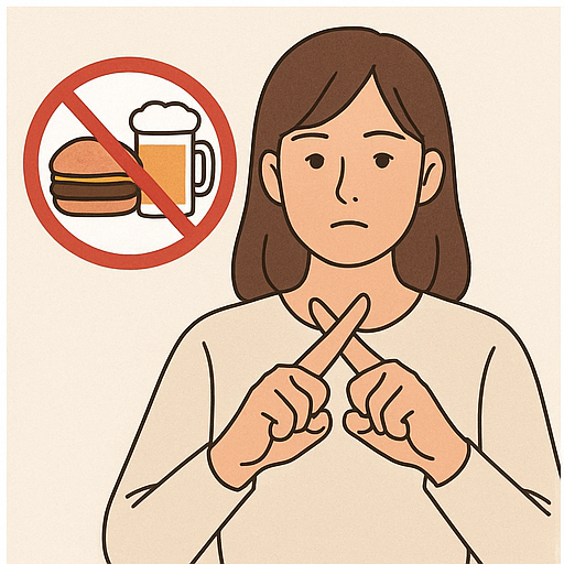🔹 피해야 할 음식 (기름진 음식, 유제품 등)
