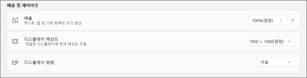글자뿐만 아니라 아이콘, 창 크기, 작업 표시줄까지 함께 조절하고 싶다면 디스플레이 배율 설정을 활용하는 것이 좋습니다.