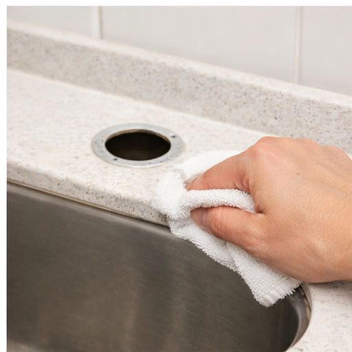 고정 너트가 완전히 풀리면 상부에서 기존 수전을 들어 올려 제거합니다. 이때 상판 주변에 남아 있는 실리콘이나 오염물은 깨끗하게 닦아 주세요. 표면이 고르지 않으면 새 제품 설치 후 미세 누수가 발생할 수 있습니다.