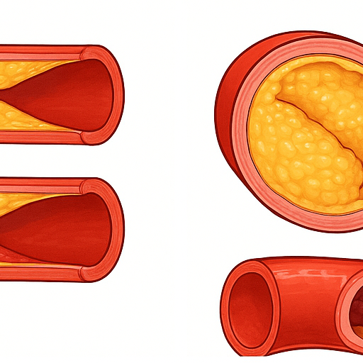 쉽게 말해서, 혈관 벽에 기름때가 끼면서 점점 딱딱해지고 좁아지는 현상이죠. 처음엔 그냥 콜레스테롤 찌꺼기가 슬쩍 달라붙는 정도예요. 근데 시간이 지나면 거기 염증세포들이 몰려들고, 또 다른 지방들이 달라붙고, 점점 두꺼운 ‘플라크(찌꺼기 덩어리)’로 자라나요.