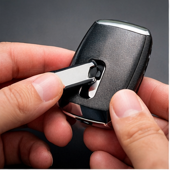 1단계: 스마트키 뒷면의 작은 버튼을 눌러 비상용 키를 분리합니다.