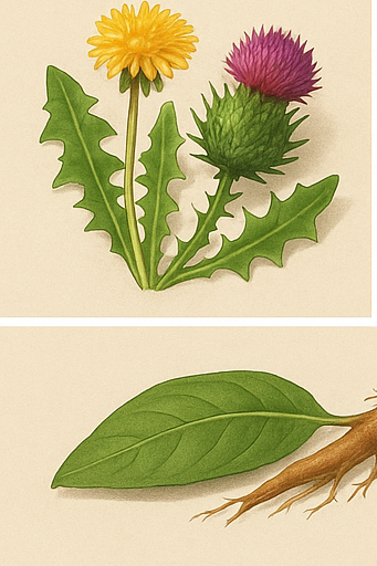 - 밀크씨슬, 민들레 뿌리, 아티초크, 오미자 등