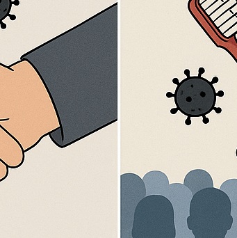 같이 밥을 먹는다든지, 악수한다든지, 같은 컵을 잠깐 쓴다든지 이런 걸로는 바이러스가 옮지 않아요. 또 포옹이나 입맞춤도 일반적으로는 큰 문제가 되지 않아요. 물론 입안에 상처가 있다거나 하면 예외지만요.