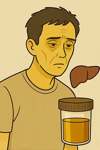 간은 우리 몸의 ‘해독 공장’이라고 할 수 있어요. 그런데 이 공장이 제 역할을 못 하면, 피 속에 빌리루빈이라는 노란색 물질이 제대로 처리되지 않고 쌓이게 돼요. 이 빌리루빈이 많아지면 피부나 눈 흰자에 노란빛이 돌고, 소변 역시 아주 진한 노란색, 때로는 갈색빛에 가까운 색으로 바뀔 수 있어요.