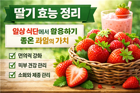 딸기의 기본 특성과 식재료로서의 활용 가치딸기는 선명한 붉은 색감과 부드러운 식감으로 많은 분들이 선호하는 과일입니다. 제철에는 생과로 즐기기 좋고, 계절이 지난 이후에도 냉동이나 가공 형태로 접하기 쉬워 활용 범위가 넓습니다. 단맛과 산미가 조화를 이루어 별도의 조리 없이도 부담 없이 섭취할 수 있으며, 디저트나 샐러드, 음료 등 다양한 메뉴에 자연스럽게 어울립니다. 이러한 특성 덕분에 연령대에 관계없이 일상 식단에 자주 포함되는 재료로 자리 잡았습니다. 또한 수분 함량이 높은 편이라 간식으로 섭취해도 무겁지 않고, 식사 후 후식으로 활용하기에도 적합합니다. 과육이 부드러워 치아에 부담이 적다는 점 역시 장점으로 꼽힙니다. 영양 구성과 균형 잡힌 식생활에 미치는 영향이 과일에는 비타민과 미네랄이 고르게..